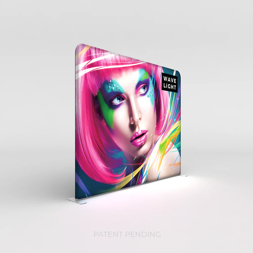 The New WaveLight® Backlit Displays are one of the thinnest tension fabric light boxes to hit the exhibit market. Within just two inches aluminum pipe profile, the WaveLight® frames an array of perfectly positioned LED lights to achieve an ultra-bright, evenly-diffused backlit display –making everything on the graphic look more brilliant and vibrant.